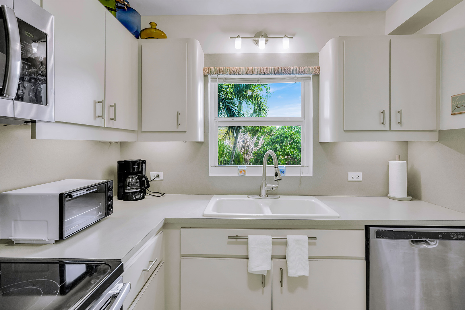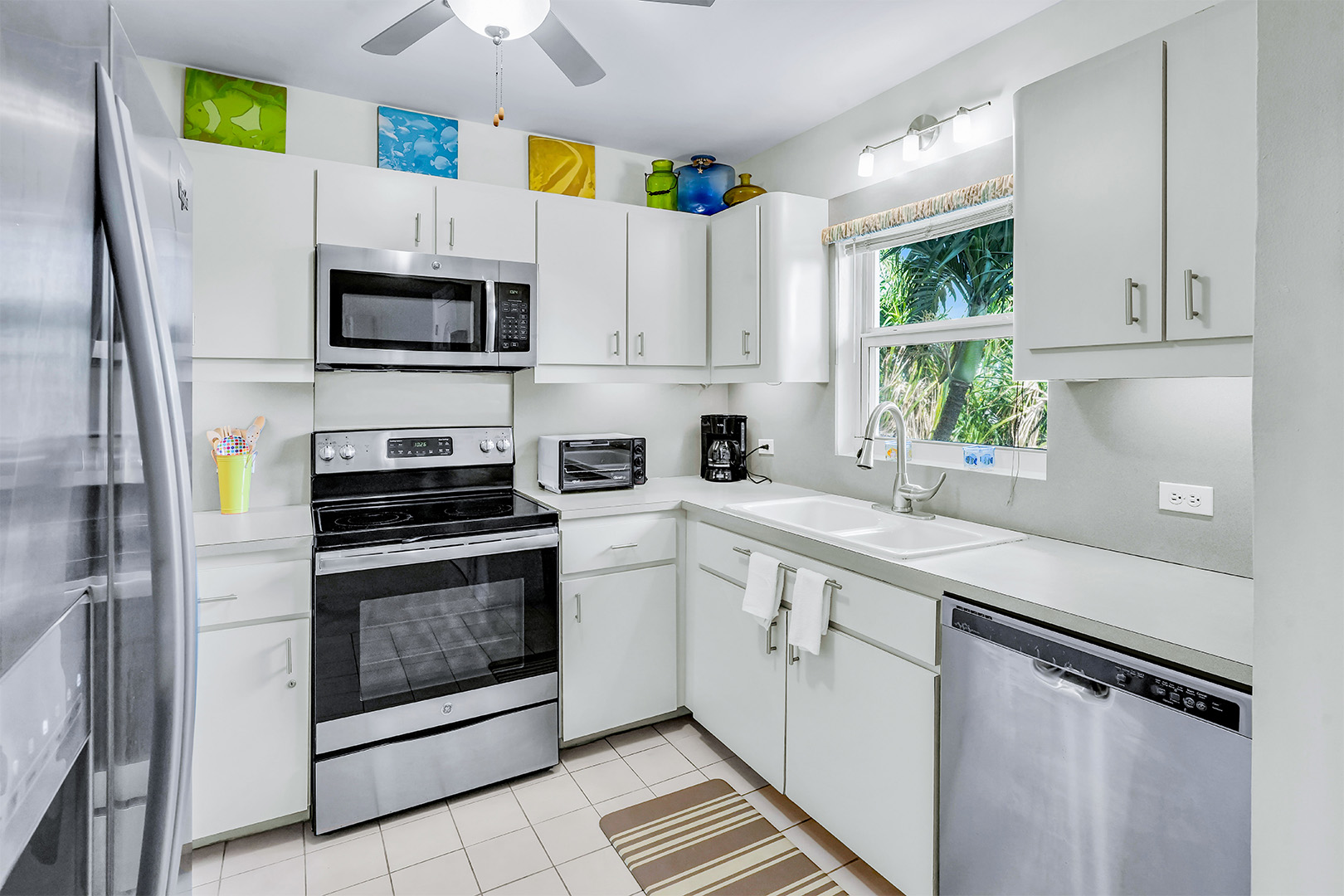 The kitchen is fully equipped and features up to date appliances. The living room includes ample seating, a flat-screen TV, and ocean-inspired art. Townhouse 25 has everything you need for a comfortable stay including complimentary Wi-Fi, Netflix, A/C, beach towels, parking, and local phone calls.